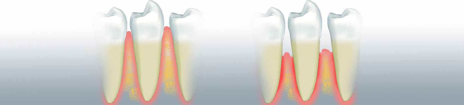 Eine Gingivitis kann auf Dauer das Zahnhalte- und Zahnstützgewebe gefährden - an einzelnen oder mehreren Zähnen kann eine Parodontitis entstehen. Wird eine Parodontitis oder Gingivitis nicht behandelt, kann eine Entzündung die Fasern, die die Zähne mit dem Kieferknochen verbinden, zerstören. Im weiteren Verlauf kann diese Entzündung zum Knochenabbau führen. Ohne Fasern und Knochen beginnen sich die Zähne zu lockern und gehen möglicherweise verloren. Parodontalerkrankungen und Zahnfleischschwund sind neben Karies die häufigste Ursache für Zahnverlust.